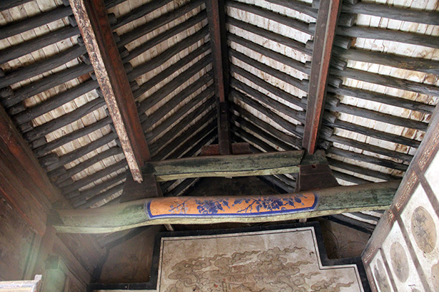 可惜,梁架太高,虽然模糊可见一些墨迹,却无法辨认清楚。