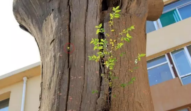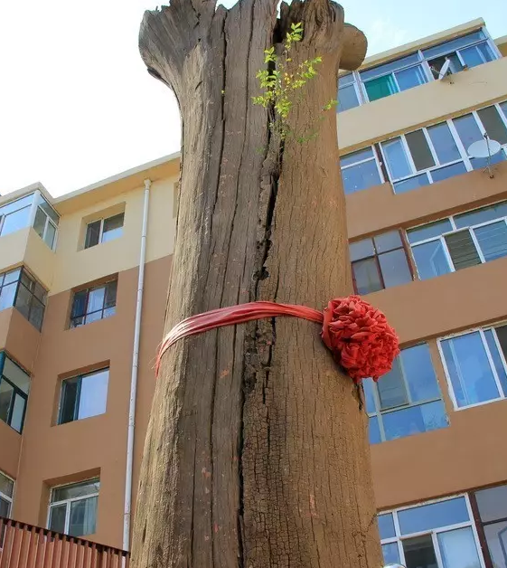 我觉得,这根枯树也是天赐之物,便雇辆大吊车把它艰难地移至南龙王庙主殿的西侧。此后,请行家前来鉴定,说是一株榆树。在包头,榆树不过是普通树种,但能长到如此粗壮,也是少有的。